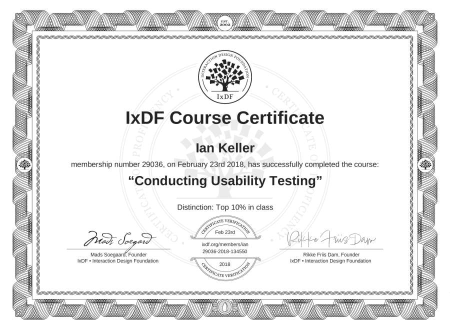 Ian Keller's IxDF Course Certificate: Conducting Usability Testing