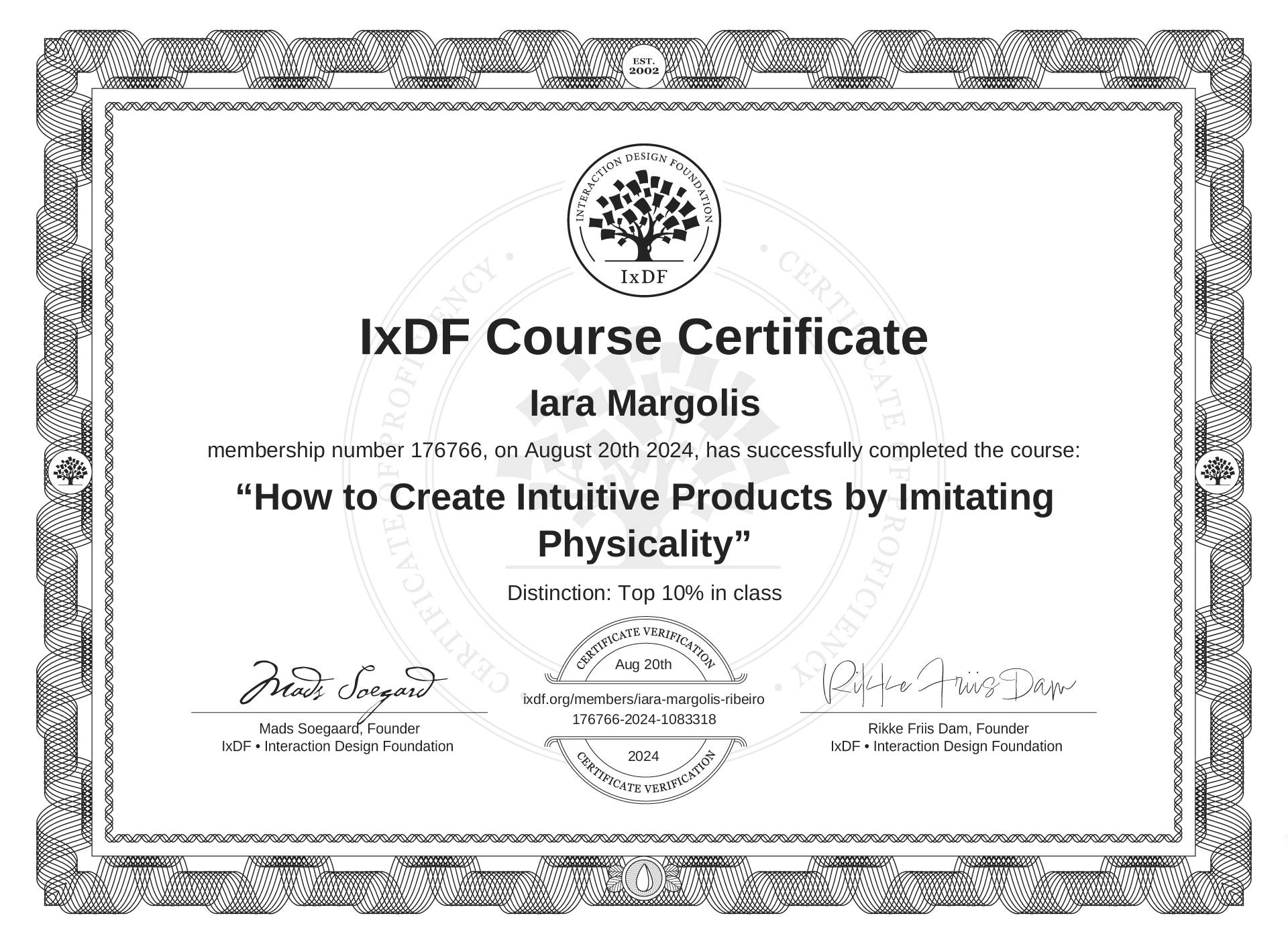Iara Margolis's IxDF Course Certificate: How to Create Intuitive Products by Imitating Physicality