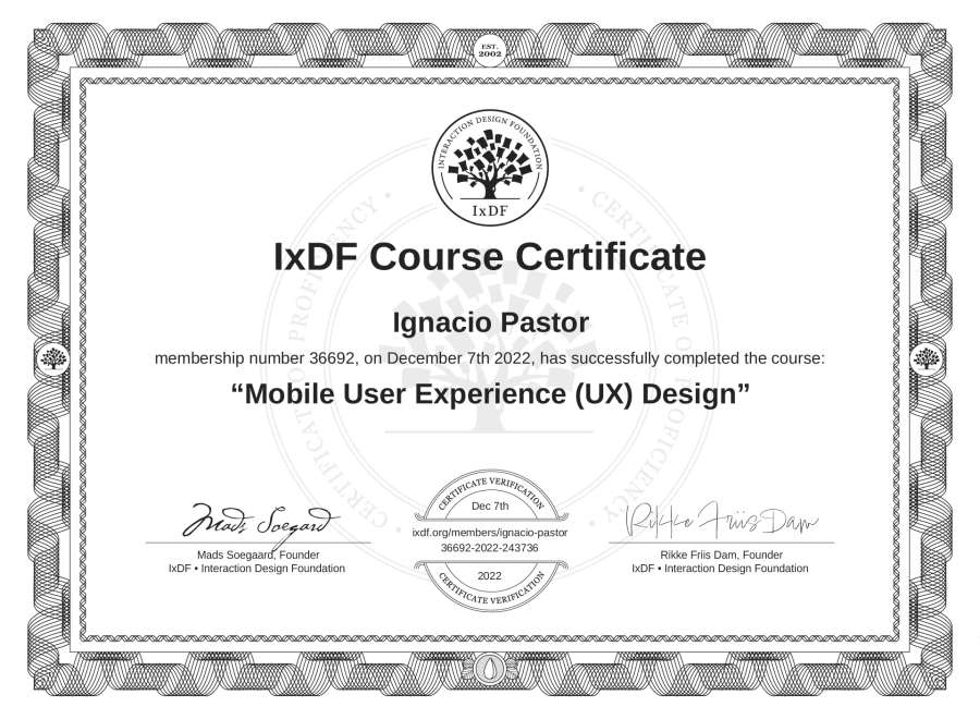 Ignacio Pastor's IxDF Course Certificate: Mobile User Experience (UX) Design