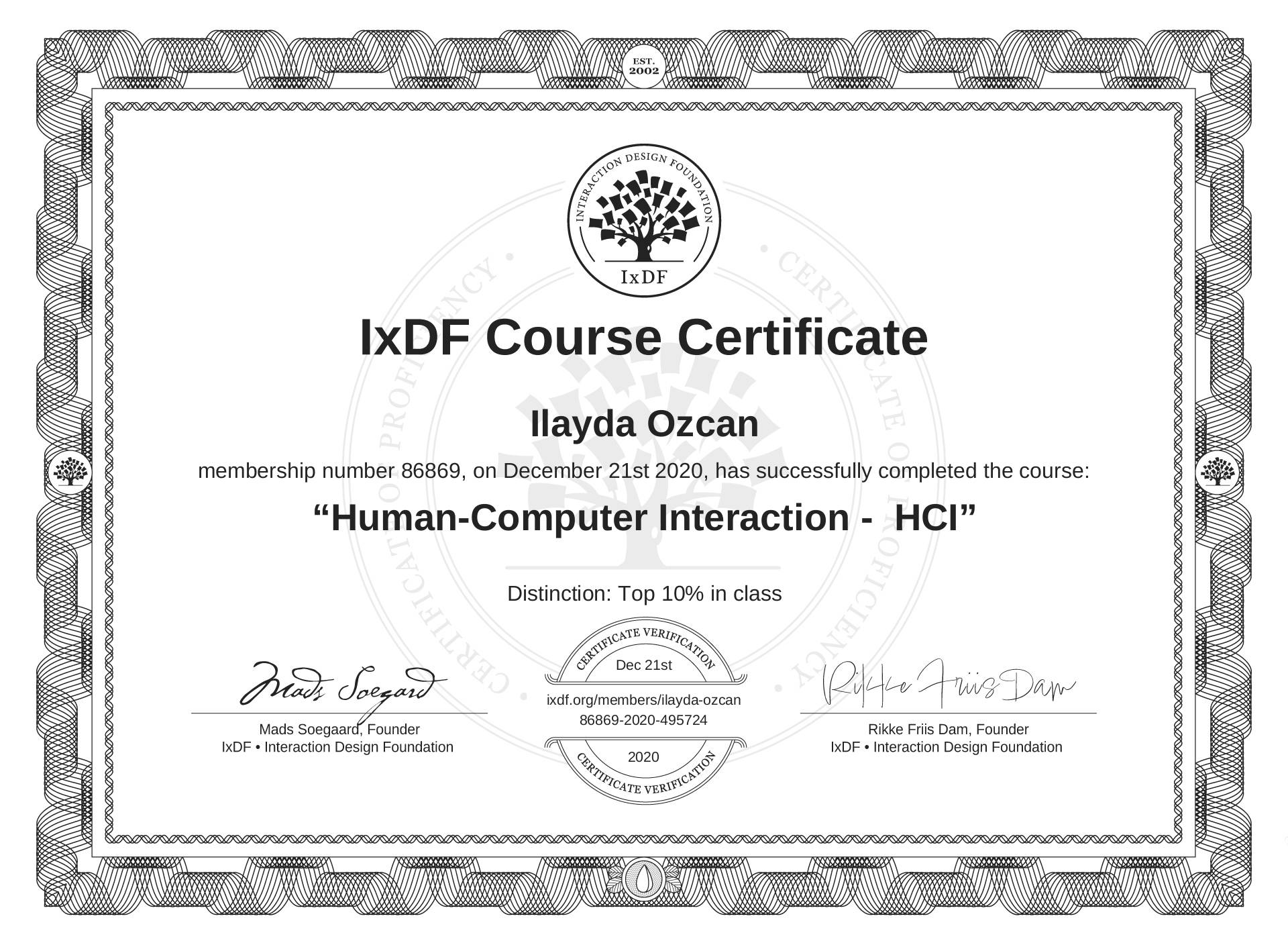 Ilayda Ozcan's IxDF Course Certificate: Human-Computer Interaction - HCI
