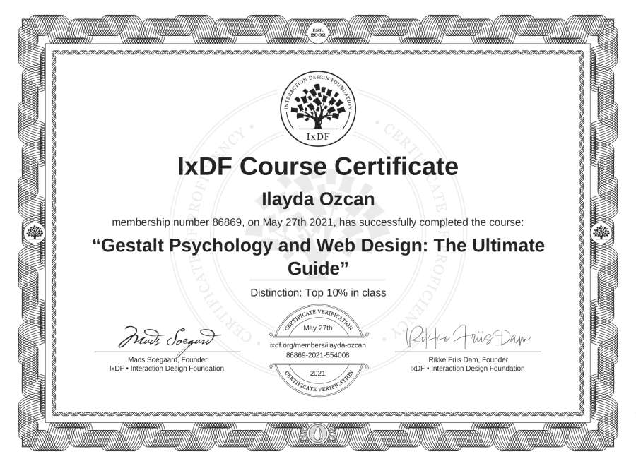 Ilayda Ozcan's IxDF Course Certificate: Gestalt Psychology and Web Design: The Ultimate Guide