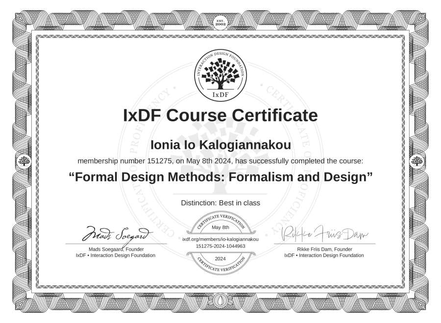 Ionia Io Kalogiannakou's IxDF Course Certificate: Formal Design Methods: Formalism and Design