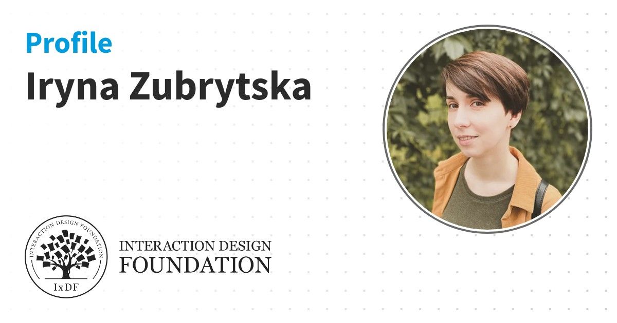 IxDF Course Certificates are awarded to Iryna Zubrytska in formal recognition of their coursework surpassing the rigorous benchmarks of exceptional performance established by the IxDF Educational Codex.