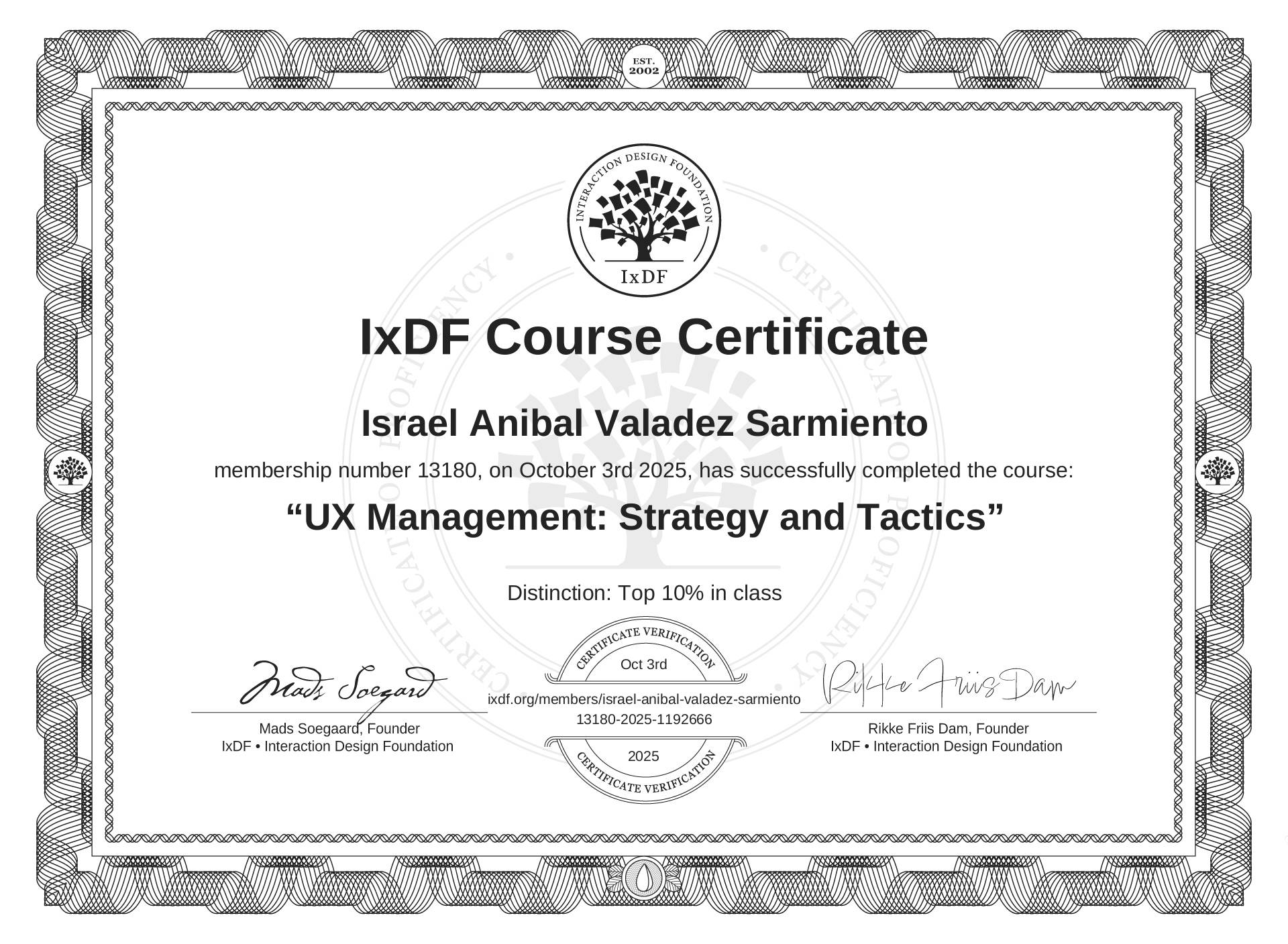 Israel Anibal Valadez Sarmiento's IxDF Course Certificate: UX Management: Strategy and Tactics