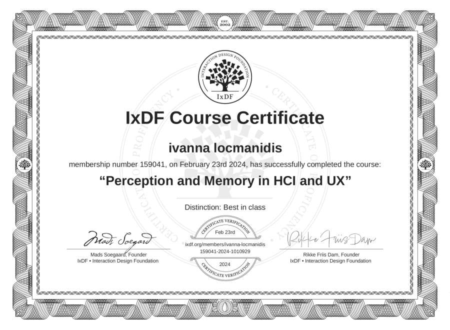 ivanna locmanidis's IxDF Course Certificate: Perception and Memory in HCI and UX