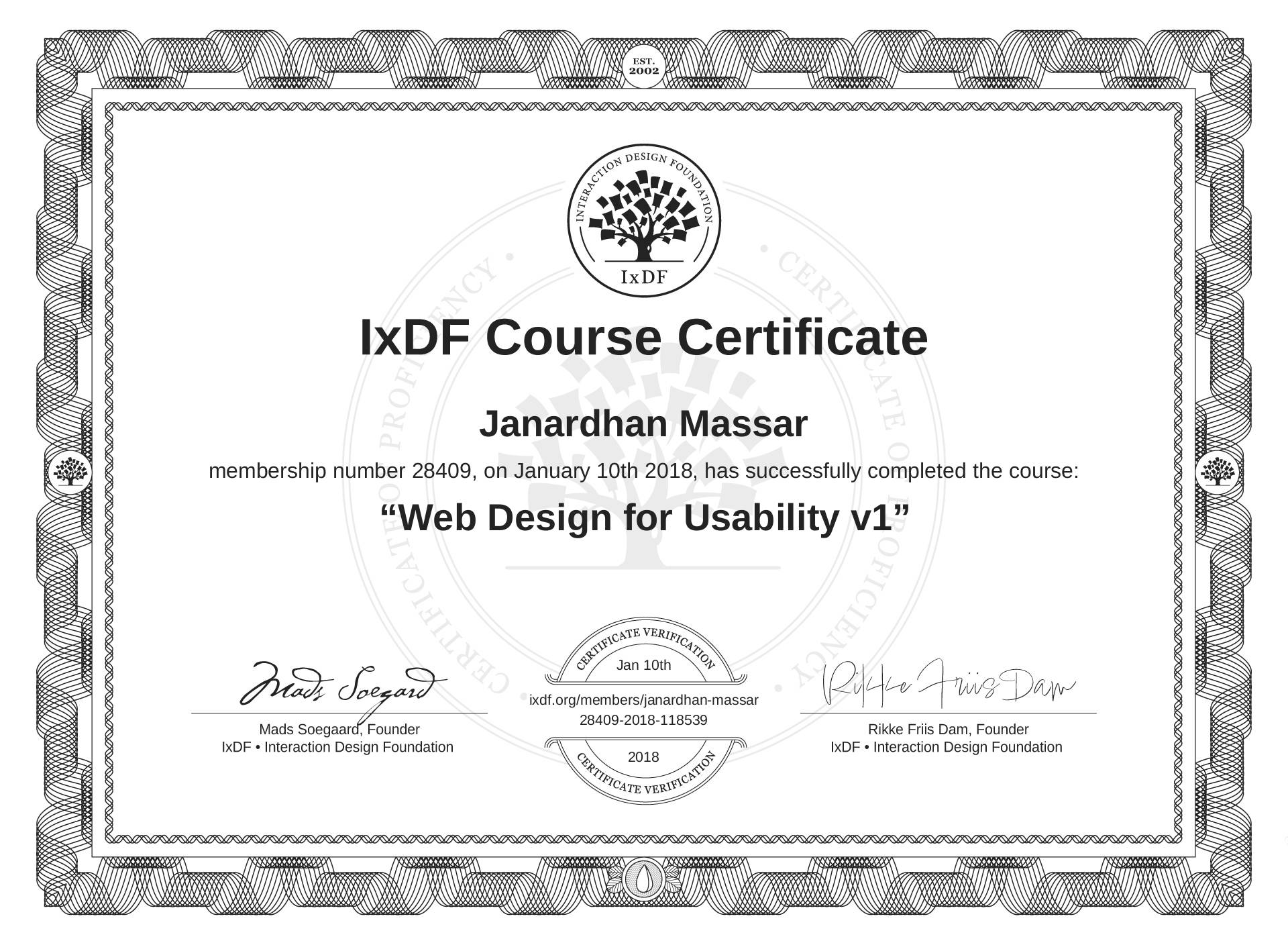 Janardhan Massar's IxDF Course Certificate: Web Design for Usability v1
