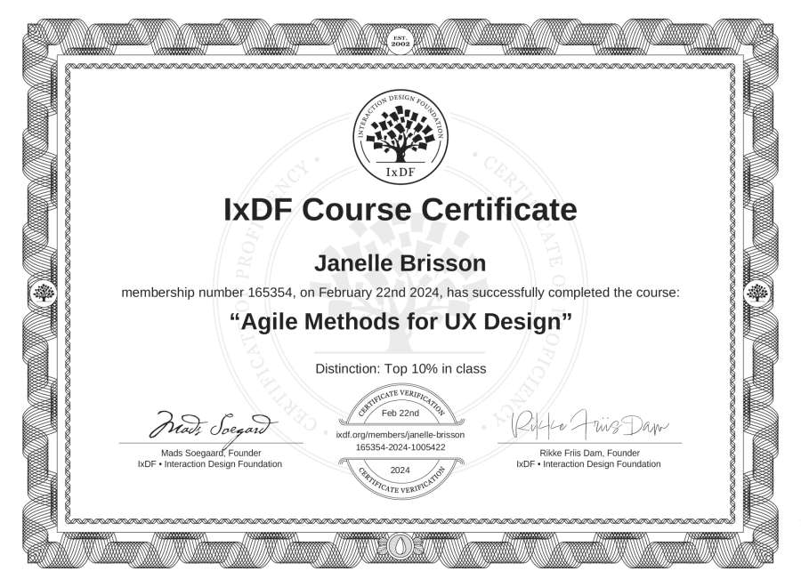 Janelle Brisson's IxDF Course Certificate: Agile Methods for UX Design