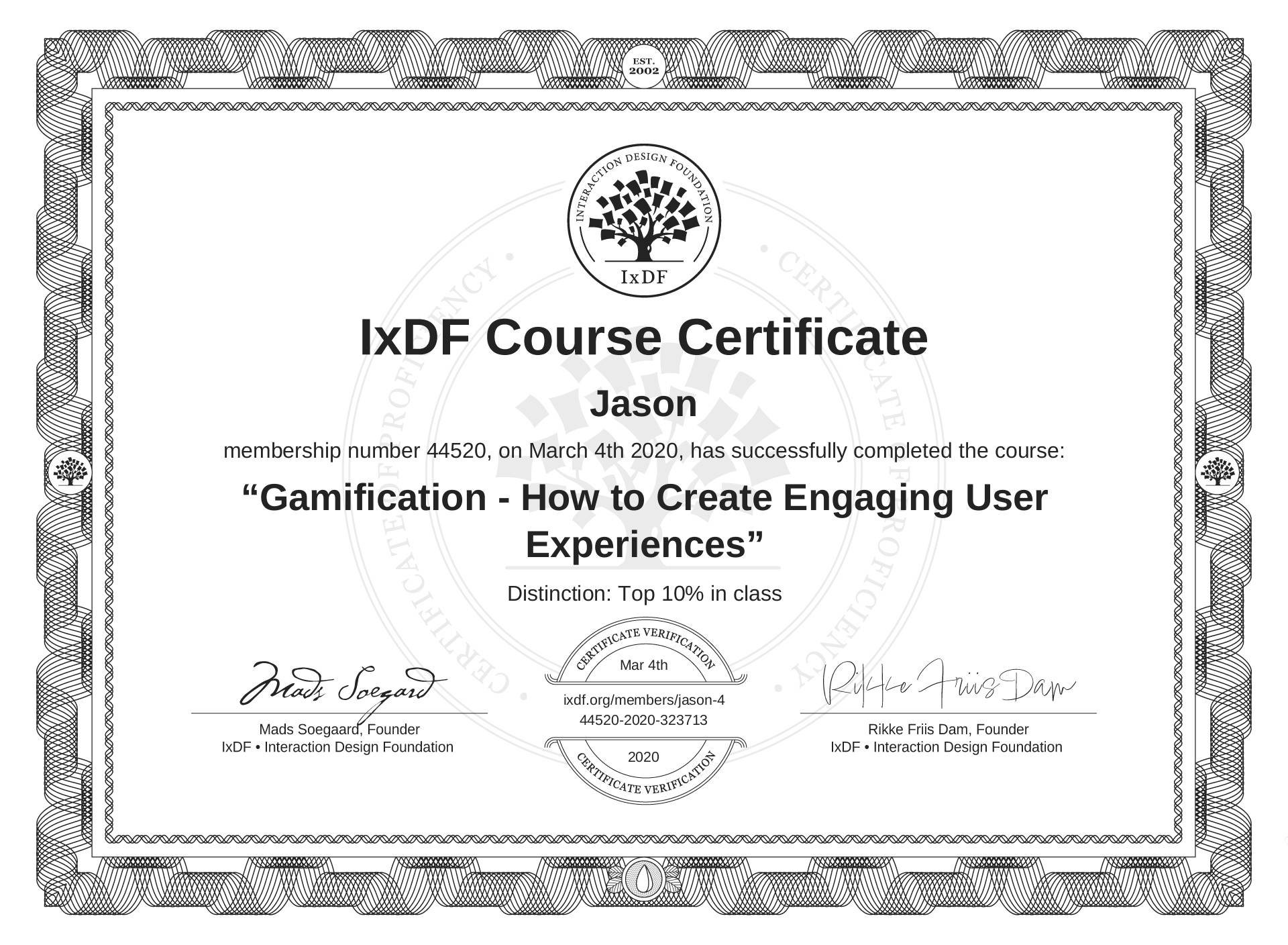 Jason's IxDF Course Certificate: Gamification - How to Create Engaging User Experiences