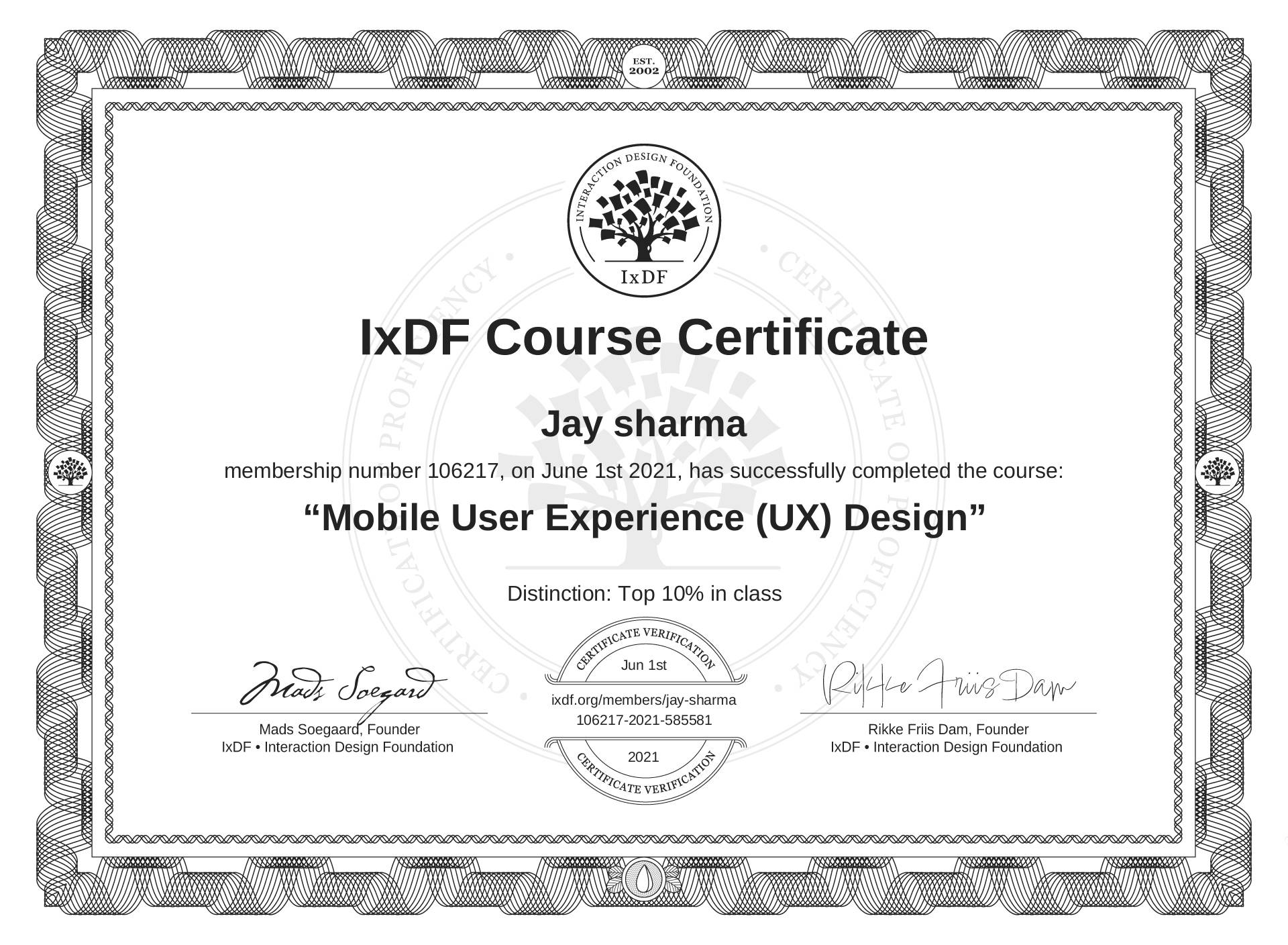 Jay sharma's IxDF Course Certificate: Mobile User Experience (UX) Design
