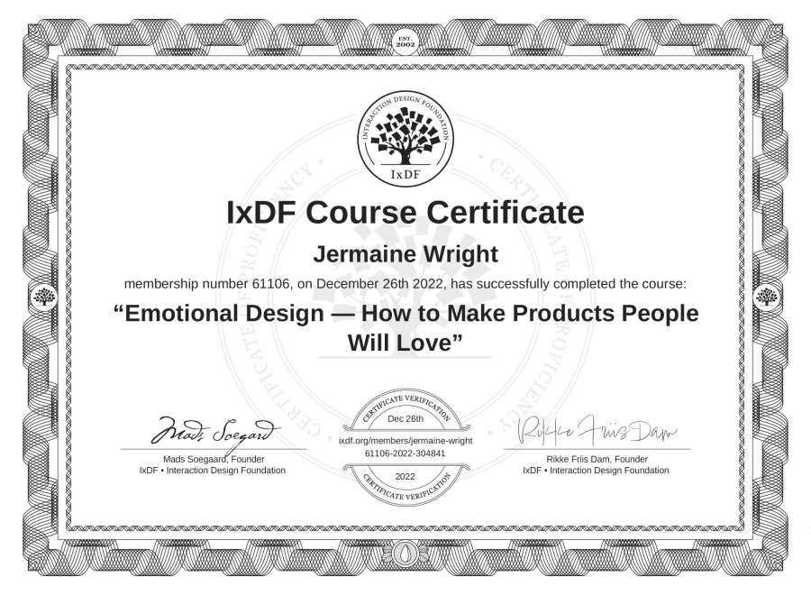 Jermaine Wright's IxDF Course Certificate: Emotional Design — How to Make Products People Will Love
