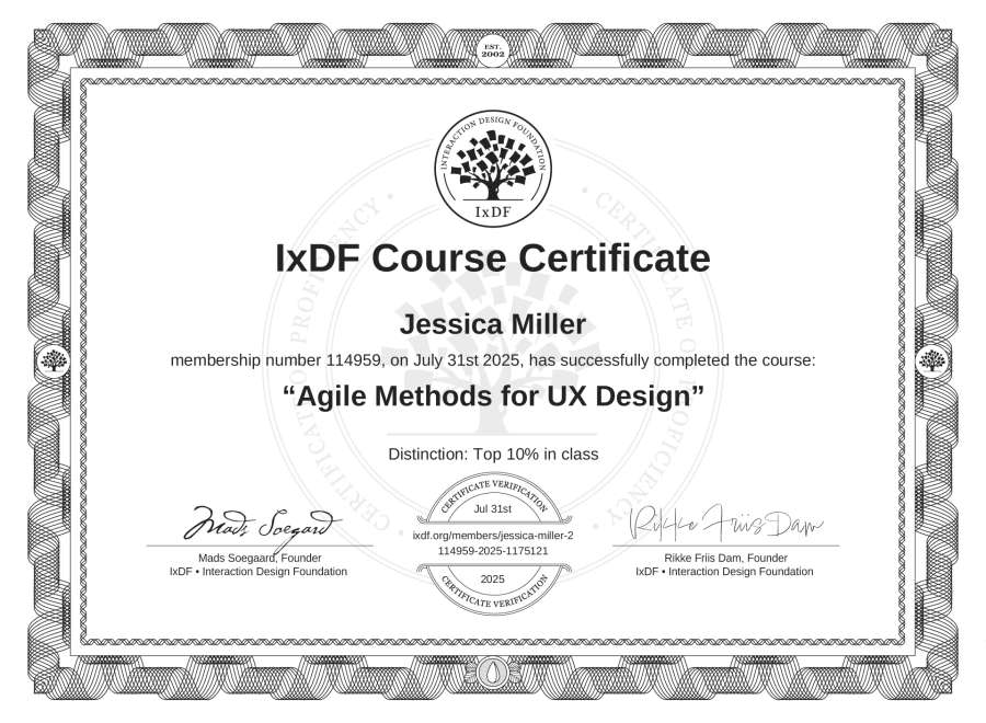 Jessica Miller's IxDF Course Certificate: Agile Methods for UX Design