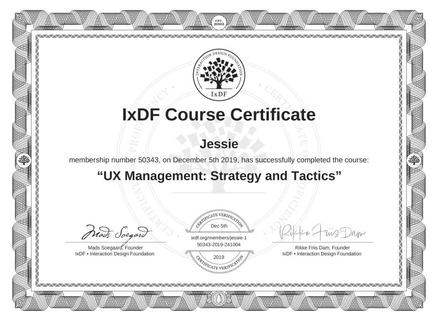 Jessie's IxDF Course Certificate: UX Management: Strategy and Tactics