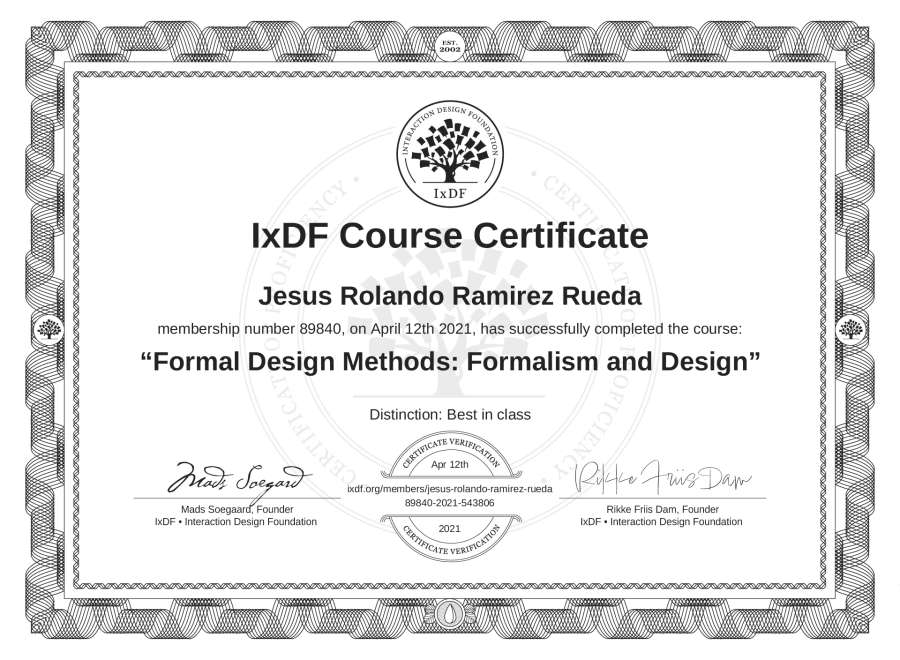 Jesús Rolando Ramírez Rueda's IxDF Course Certificate: Formal Design Methods: Formalism and Design