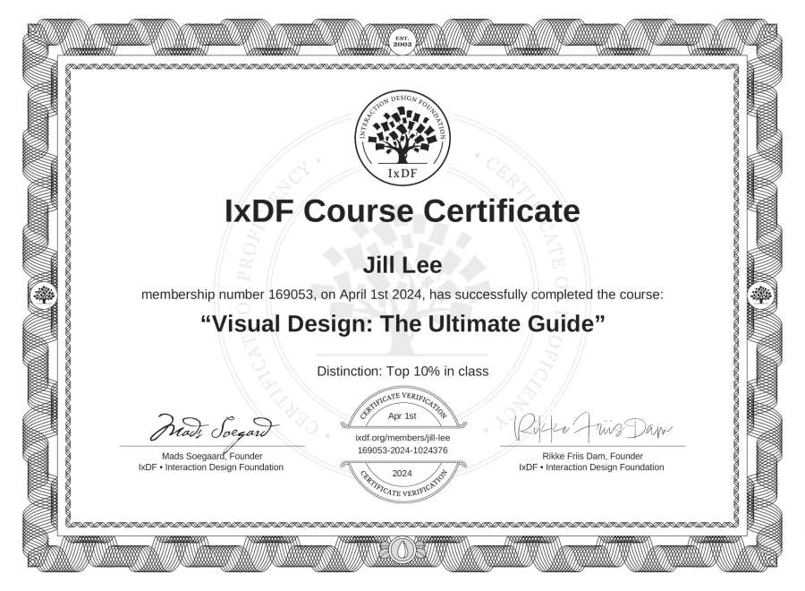 Jill Lee's IxDF Course Certificate: Visual Design: The Ultimate Guide