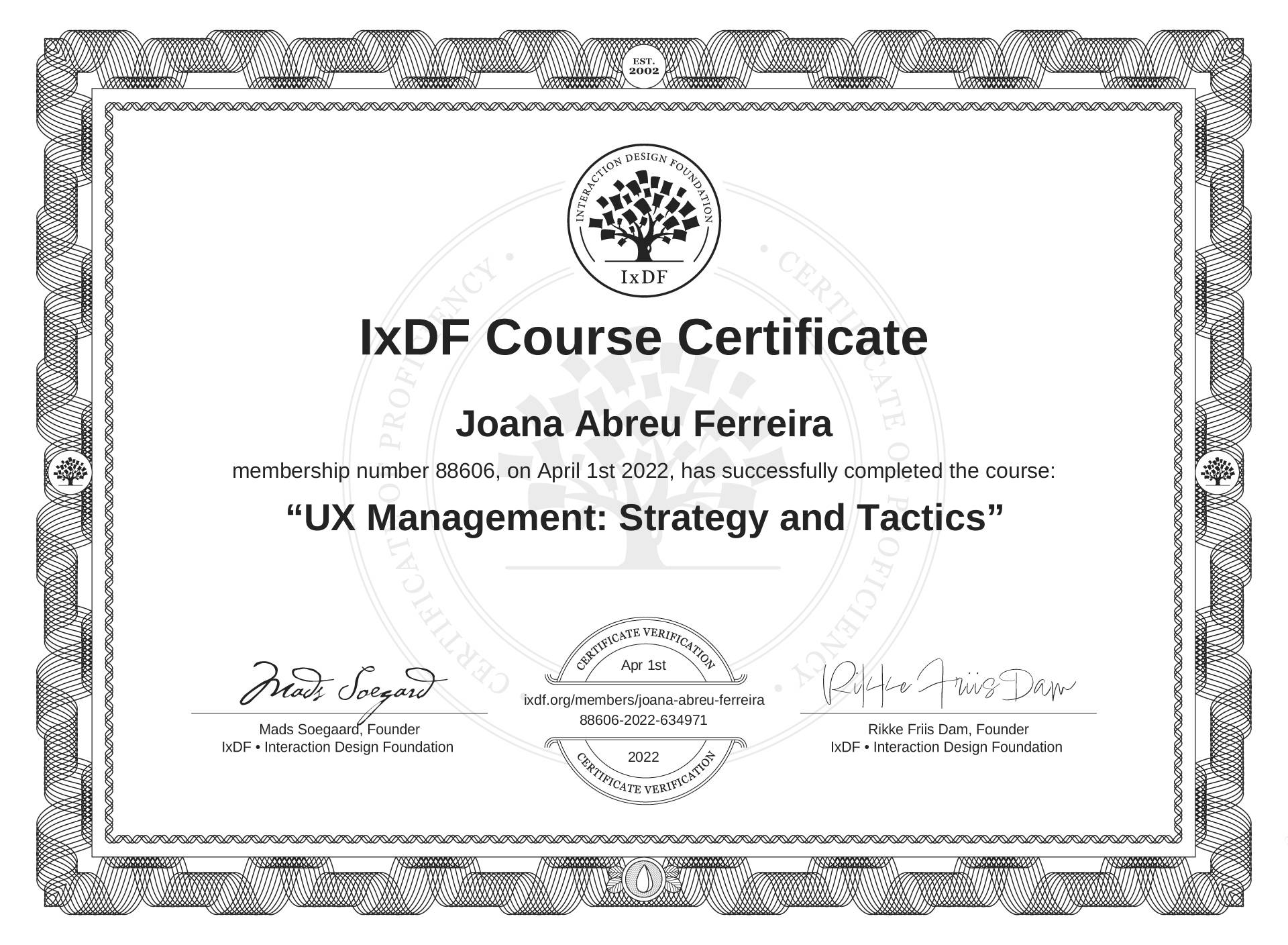 Joana Abreu Ferreira's IxDF Course Certificate: UX Management: Strategy and Tactics