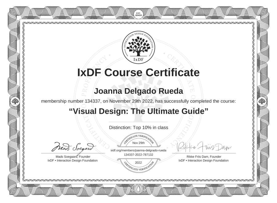 Joanna Delgado Rueda's IxDF Course Certificate: Visual Design: The Ultimate Guide