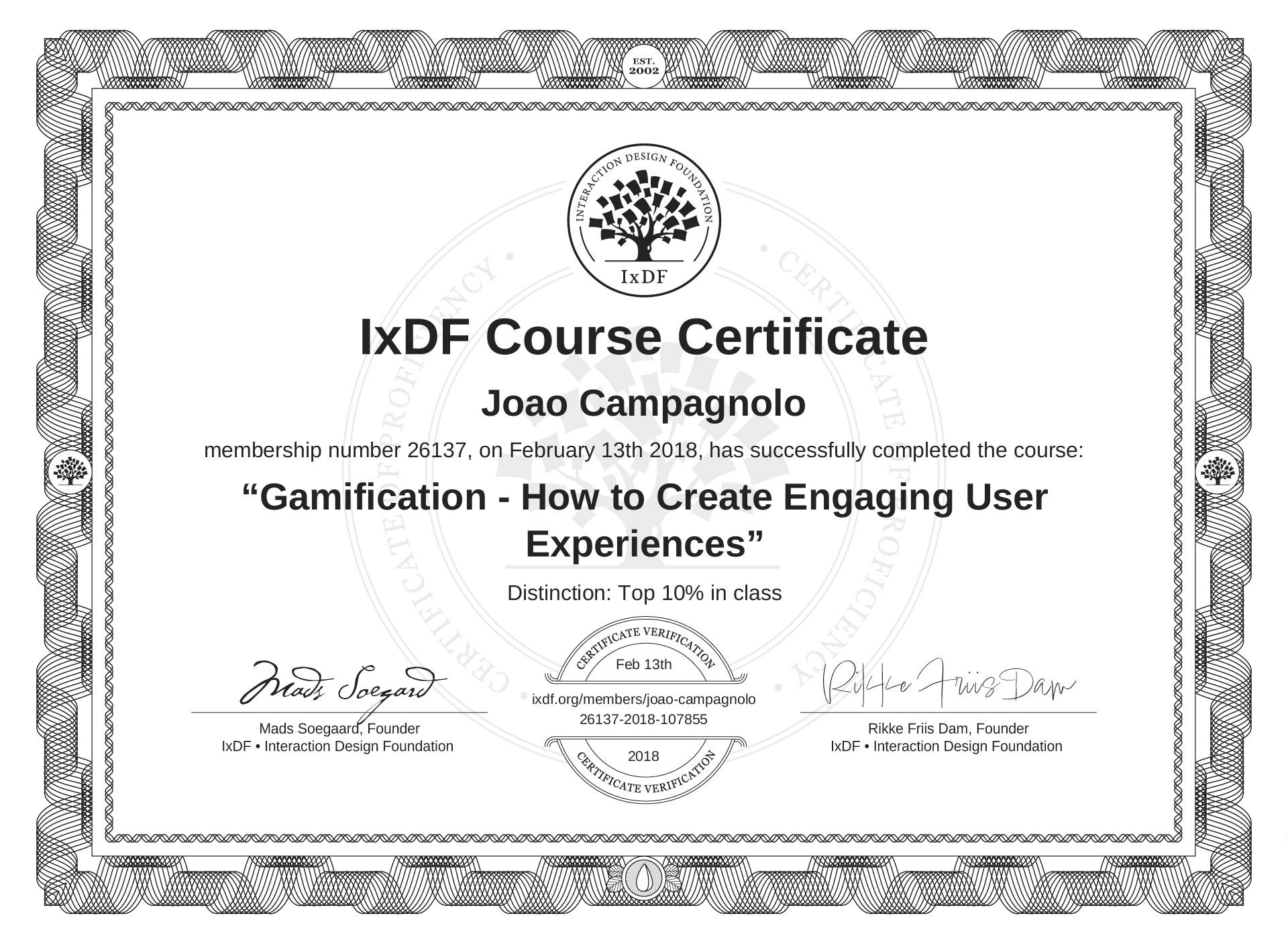 João Campagnolo's IxDF Course Certificate: Gamification - How to Create Engaging User Experiences