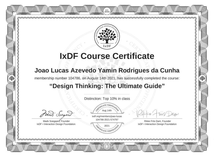 João Lucas Azevedo Yamin Rodrigues da Cunha's IxDF Course Certificate: Design Thinking: The Ultimate Guide