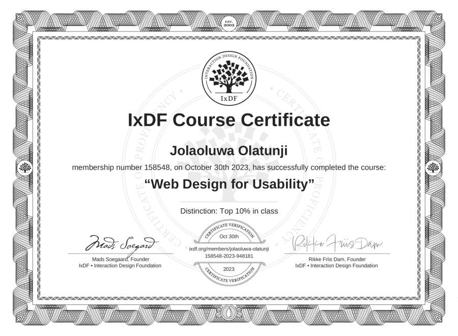 Jolaoluwa Olatunji's IxDF Course Certificate: Web Design for Usability