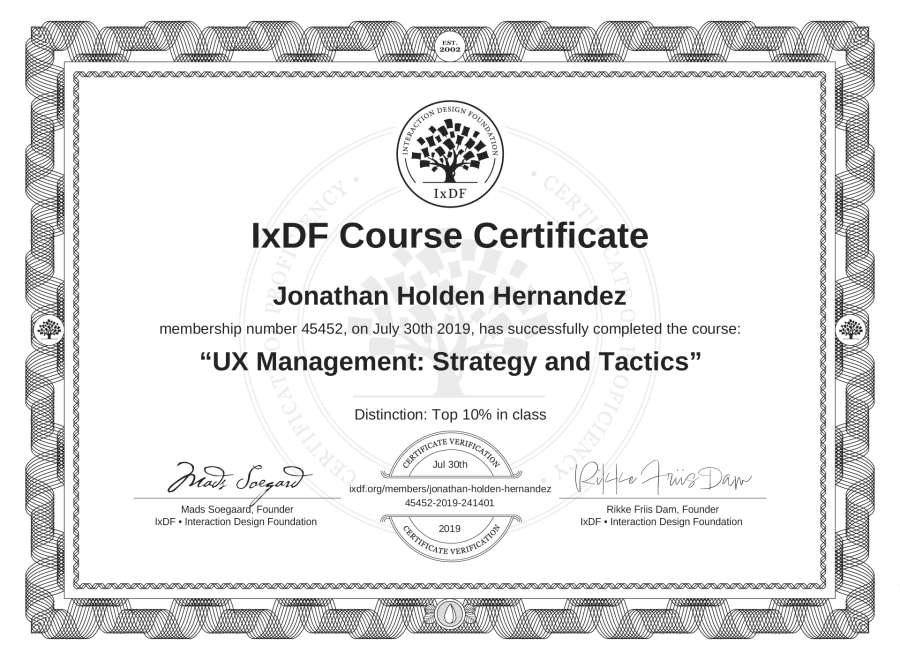 Jonathan Holden Hernandez's IxDF Course Certificate: UX Management: Strategy and Tactics