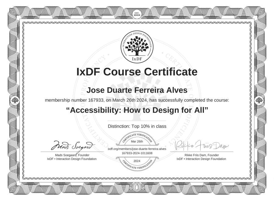 Jose Duarte Ferreira Alves's IxDF Course Certificate: Accessibility: How to Design for All