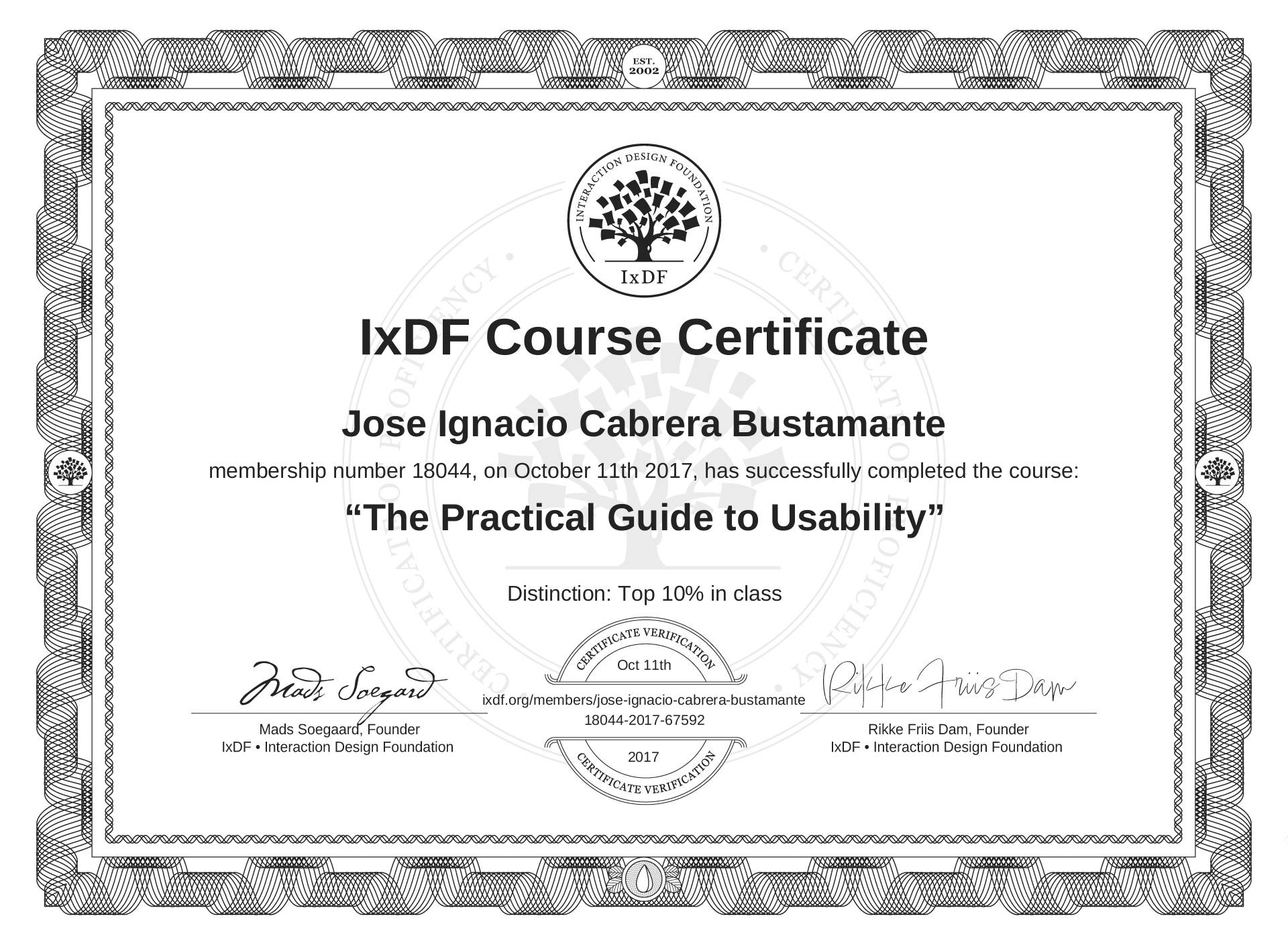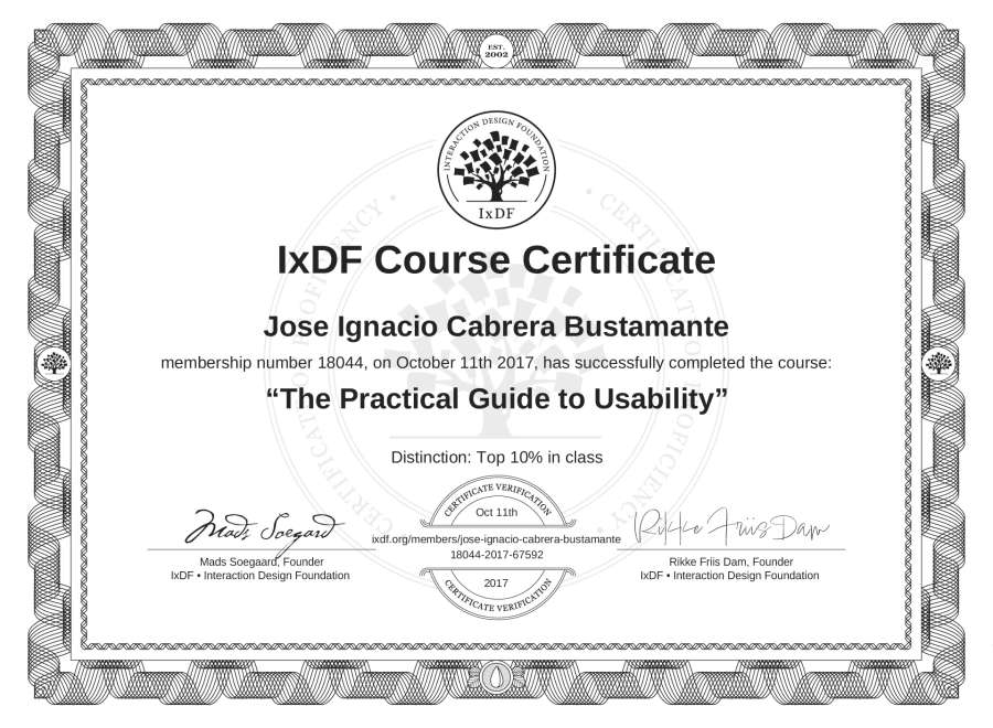 Jose Ignacio Cabrera Bustamante's IxDF Course Certificate: The Practical Guide to Usability