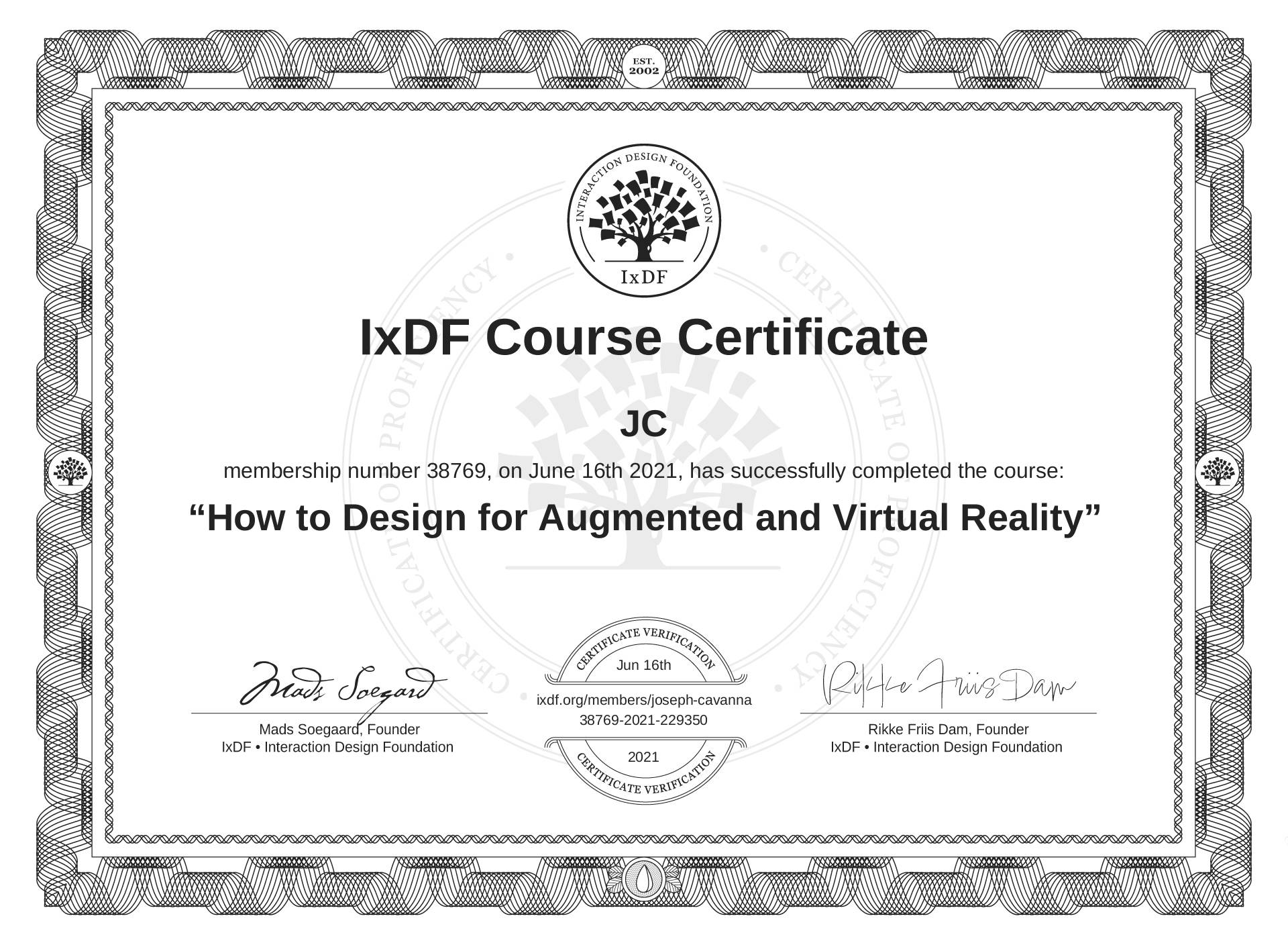 JC's IxDF Course Certificate: How to Design for Augmented and Virtual Reality