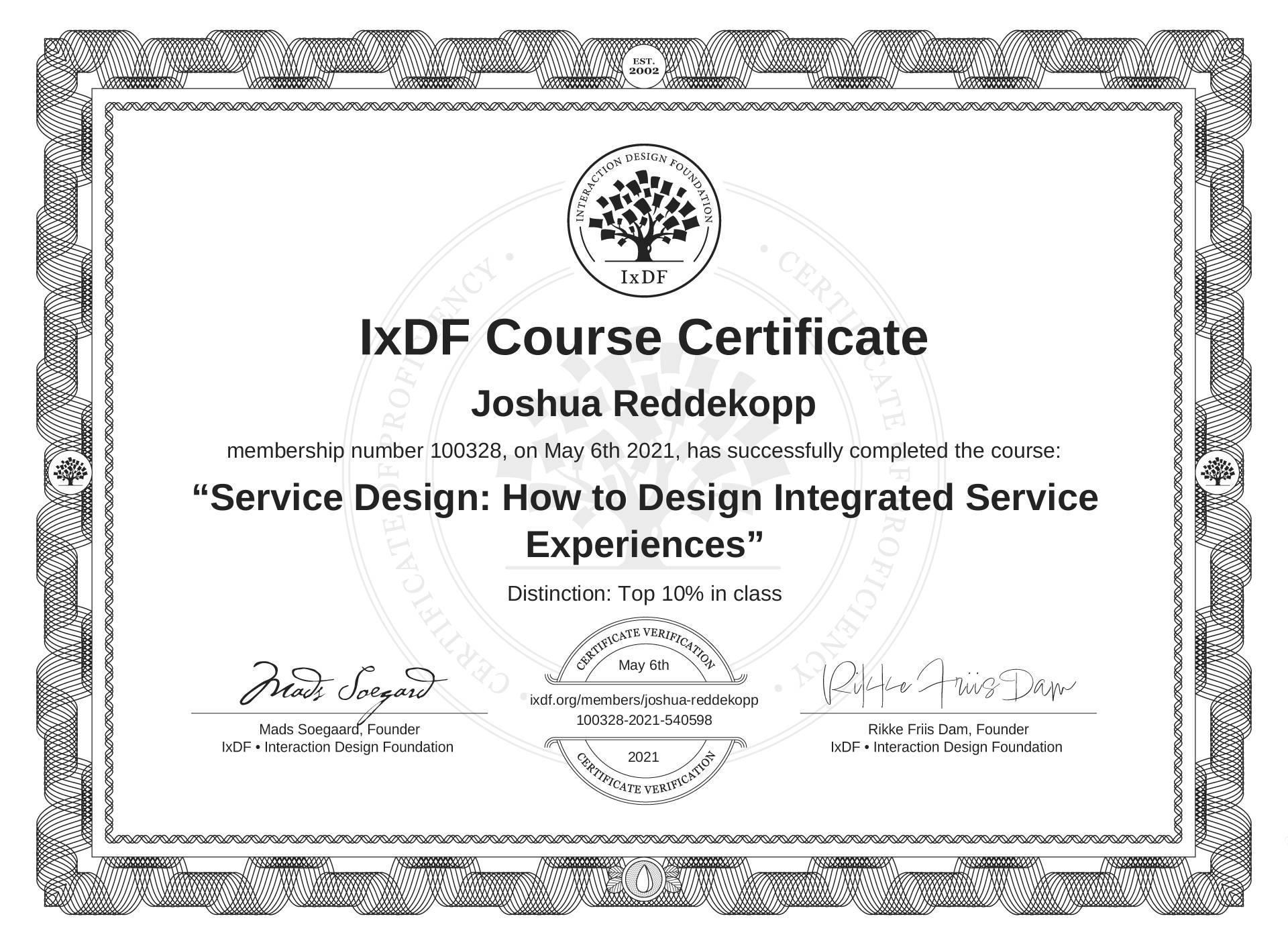 Joshua Reddekopp's IxDF Course Certificate: Service Design: How to Design Integrated Service Experiences