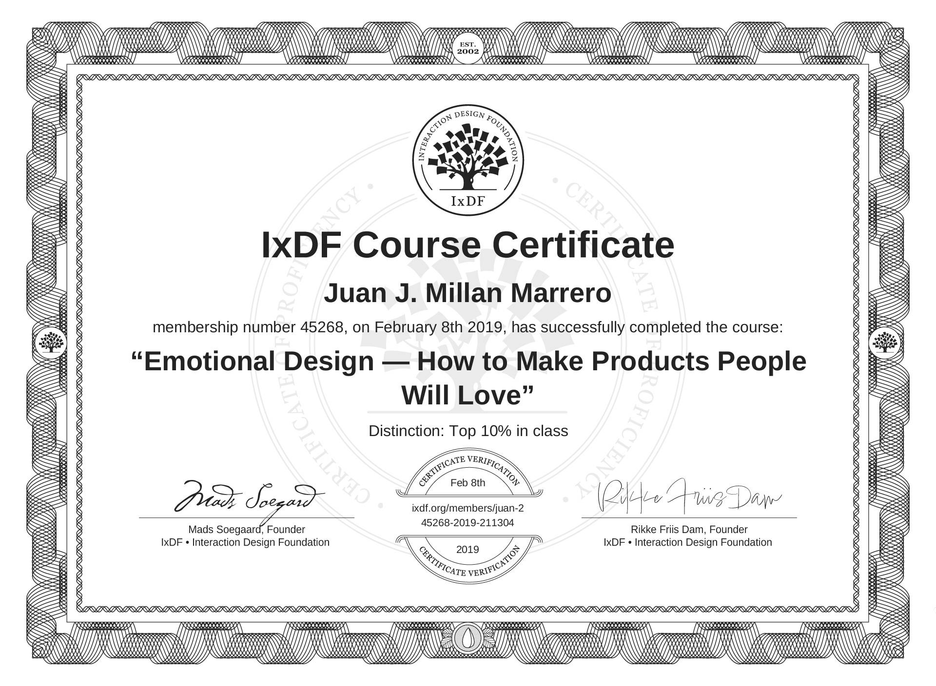 Juan J. Millan Marrero's IxDF Course Certificate: Emotional Design — How to Make Products People Will Love