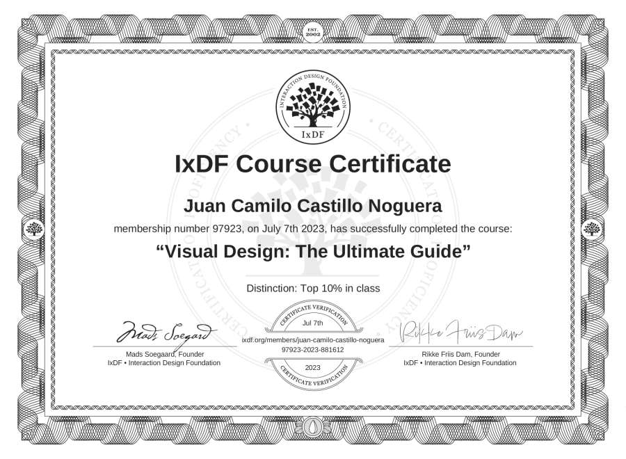 Juan Camilo Castillo Noguera's IxDF Course Certificate: Visual Design: The Ultimate Guide