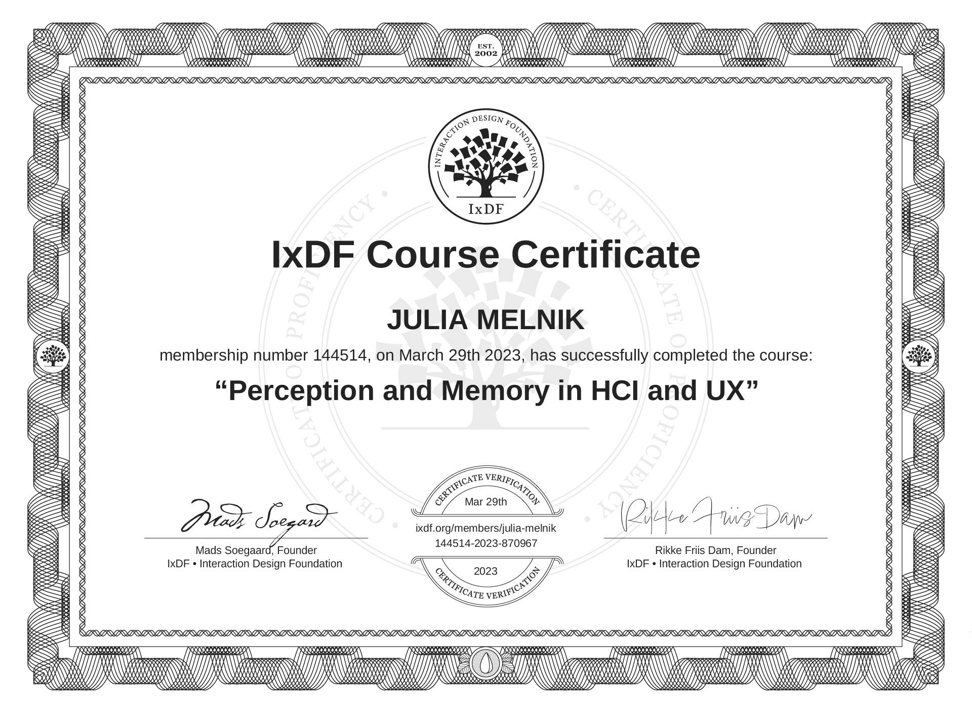 JULIA MELNIK's IxDF Course Certificate: Perception and Memory in HCI and UX