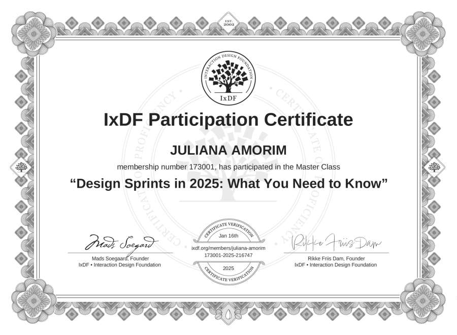 JULIANA AMORIM's IxDF Masterclass Certificate: Design Sprints in 2025: What You Need to Know