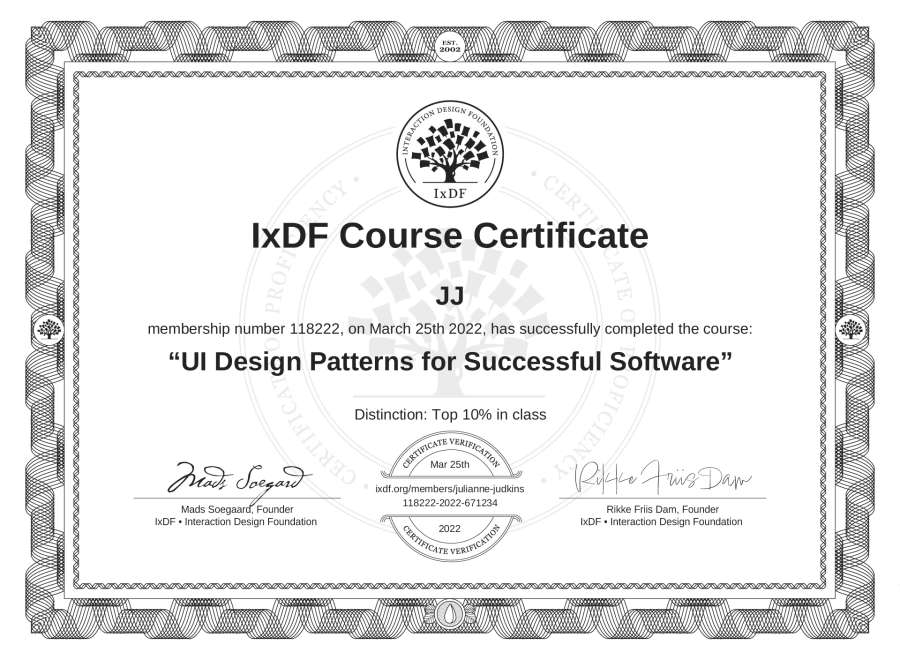 JJ's IxDF Course Certificate: UI Design Patterns for Successful Software