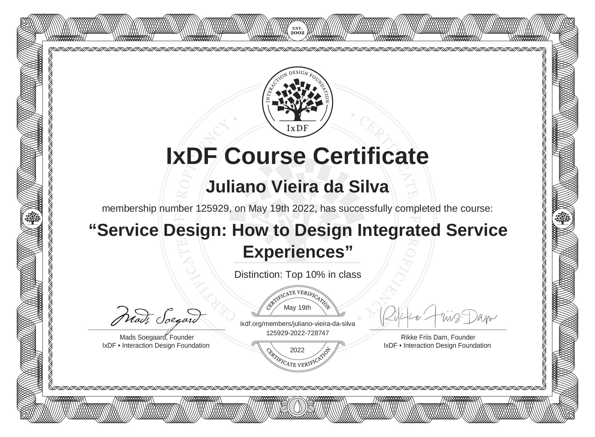 Juliano Vieira da Silva's IxDF Course Certificate: Service Design: How to Design Integrated Service Experiences