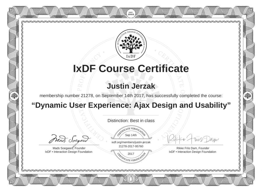 Justin Jerzak's IxDF Course Certificate: Dynamic User Experience: Ajax Design and Usability