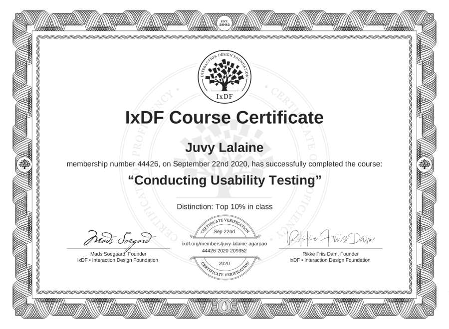 Juvy Lalaine π΅π's IxDF Course Certificate: Conducting Usability Testing