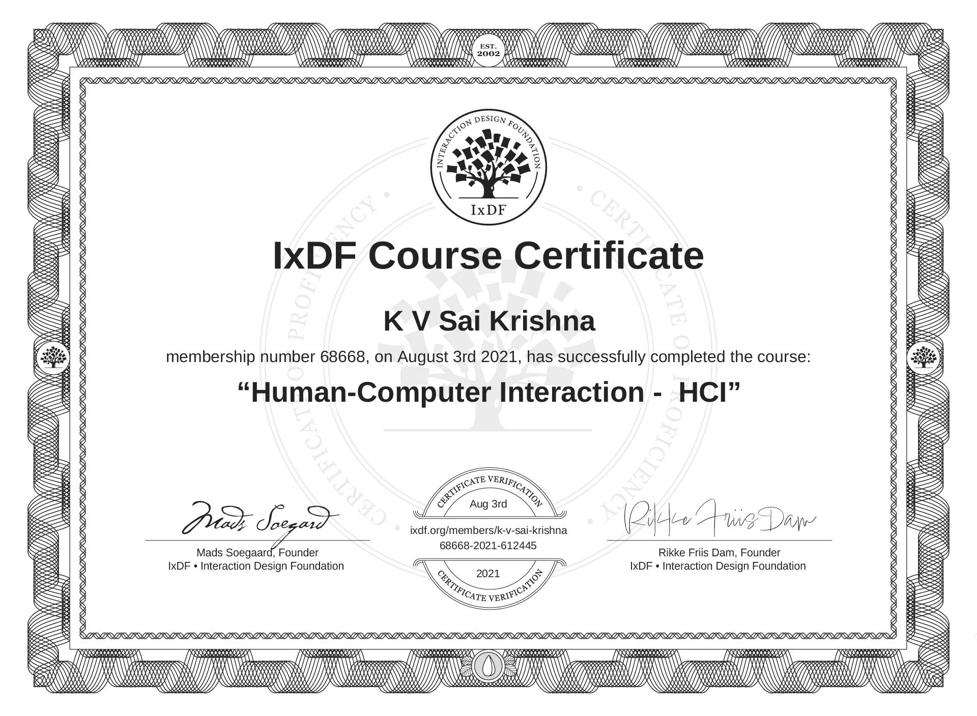K V Sai Krishna's IxDF Course Certificate: Human-Computer Interaction - HCI