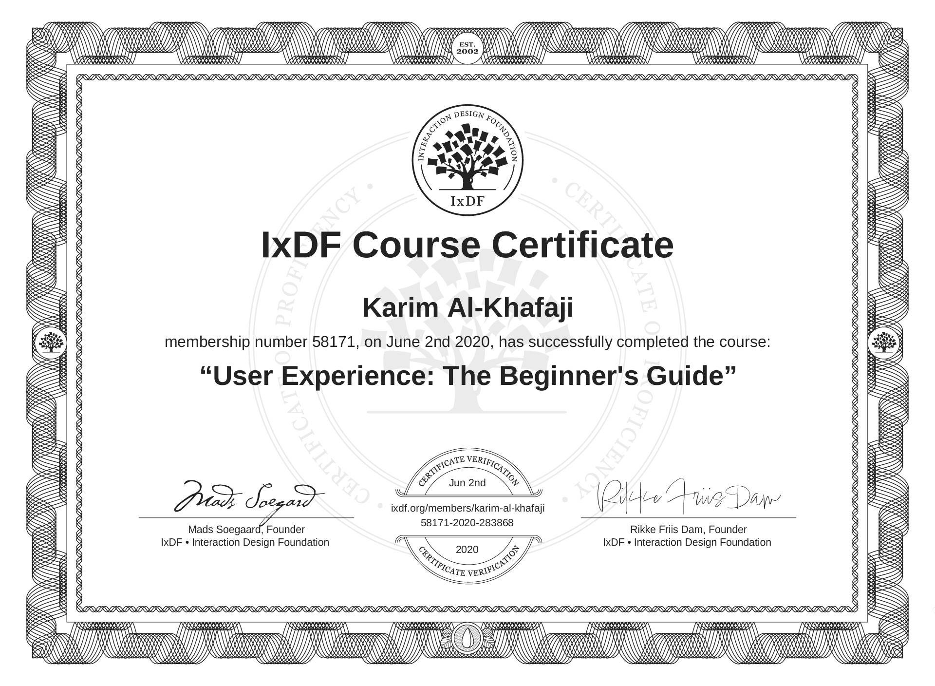 Karim Al-Khafaji's IxDF Course Certificate: User Experience: The Beginner's Guide