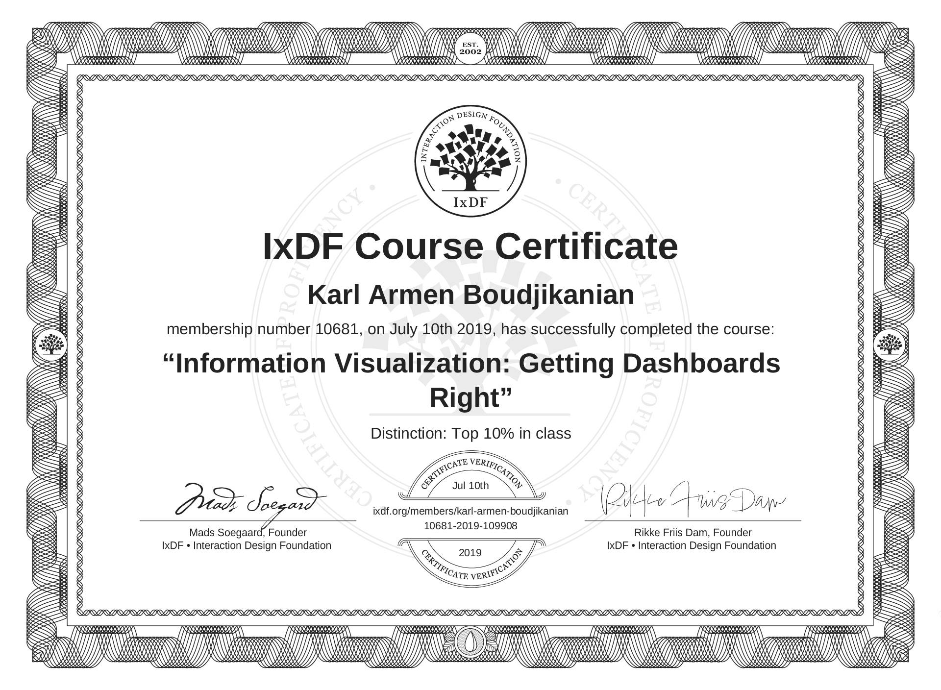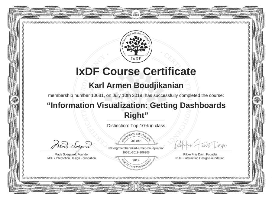 Karl Armen Boudjikanian's IxDF Course Certificate: Information Visualization: Getting Dashboards Right