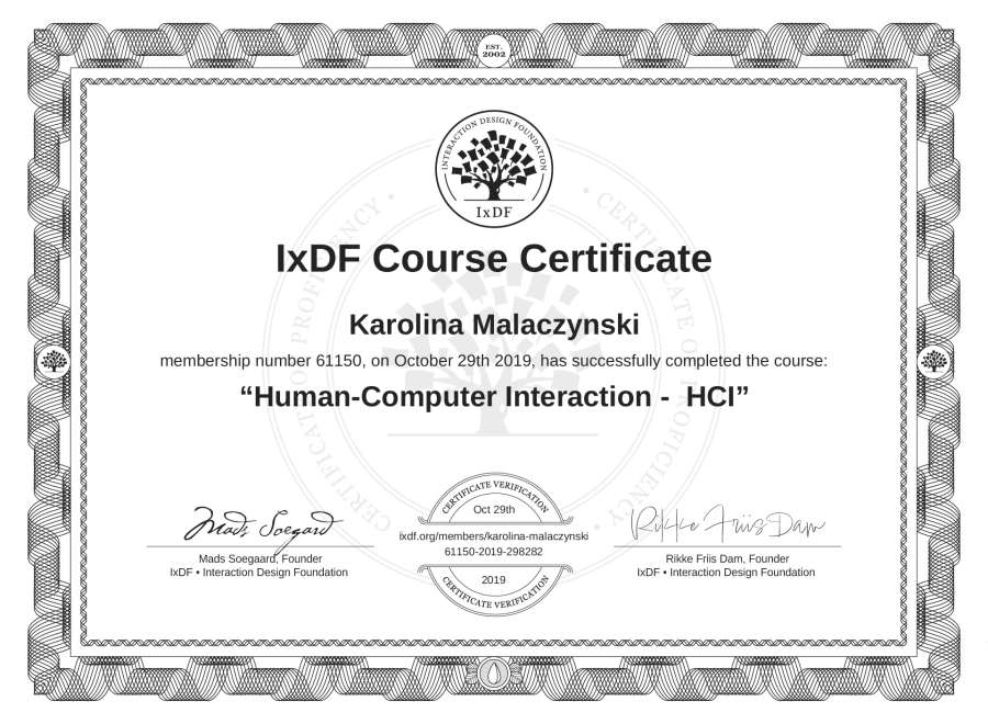 Karolina Malaczynski's IxDF Course Certificate: Human-Computer Interaction - HCI