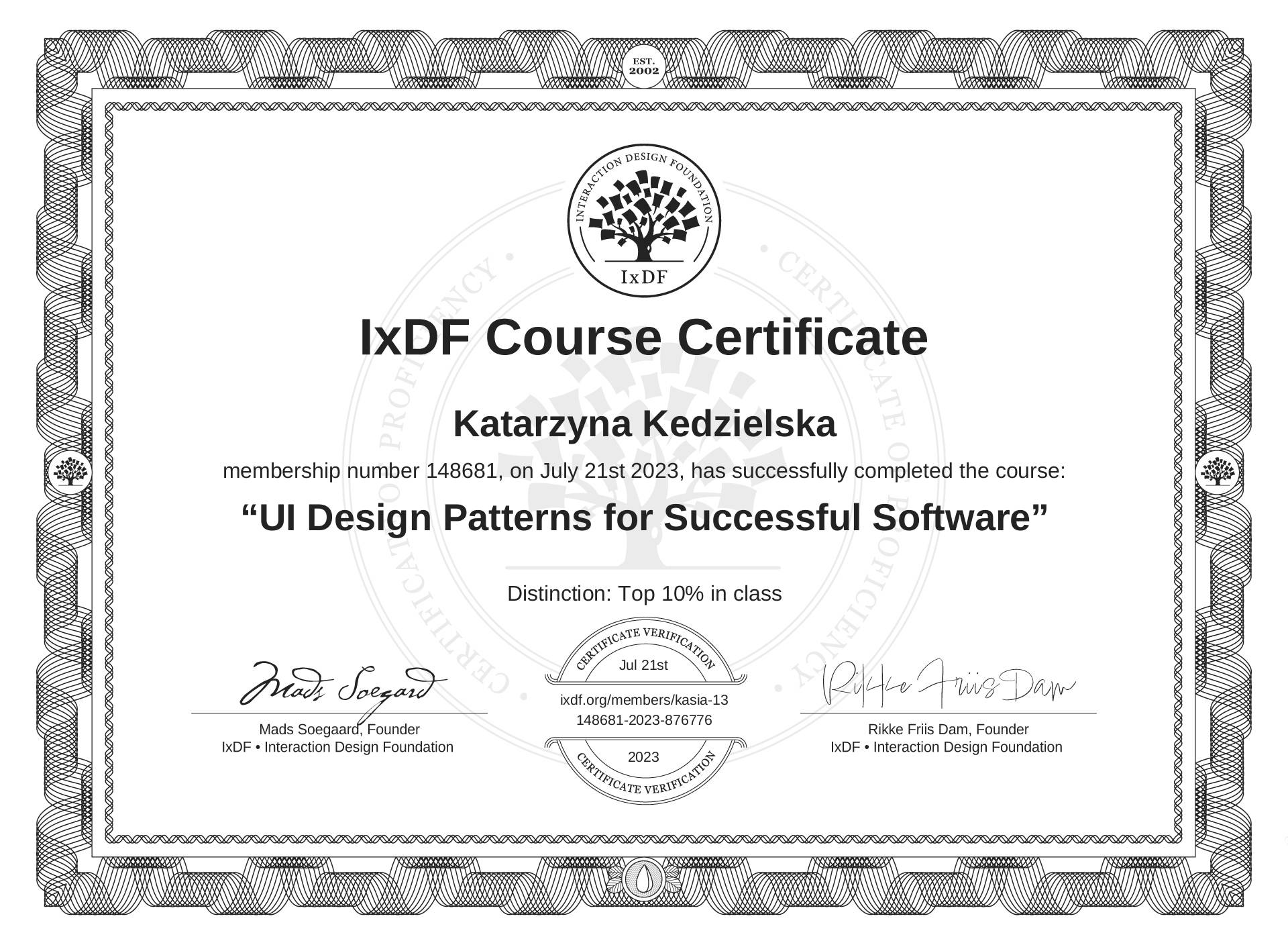 Katarzyna Kędzielska's IxDF Course Certificate: UI Design Patterns for Successful Software