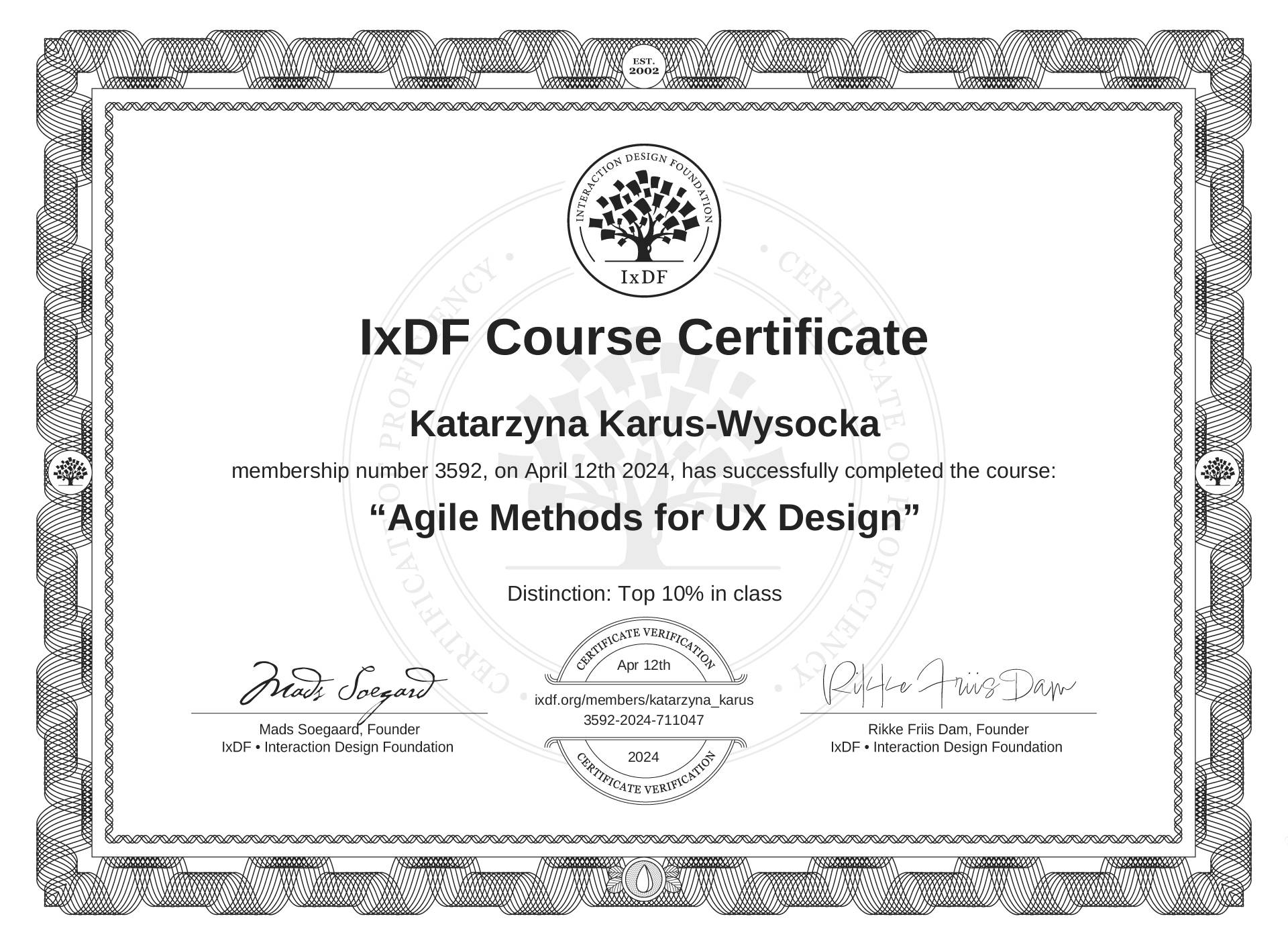 Katarzyna Karus-Wysocka's IxDF Course Certificate: Agile Methods for UX Design