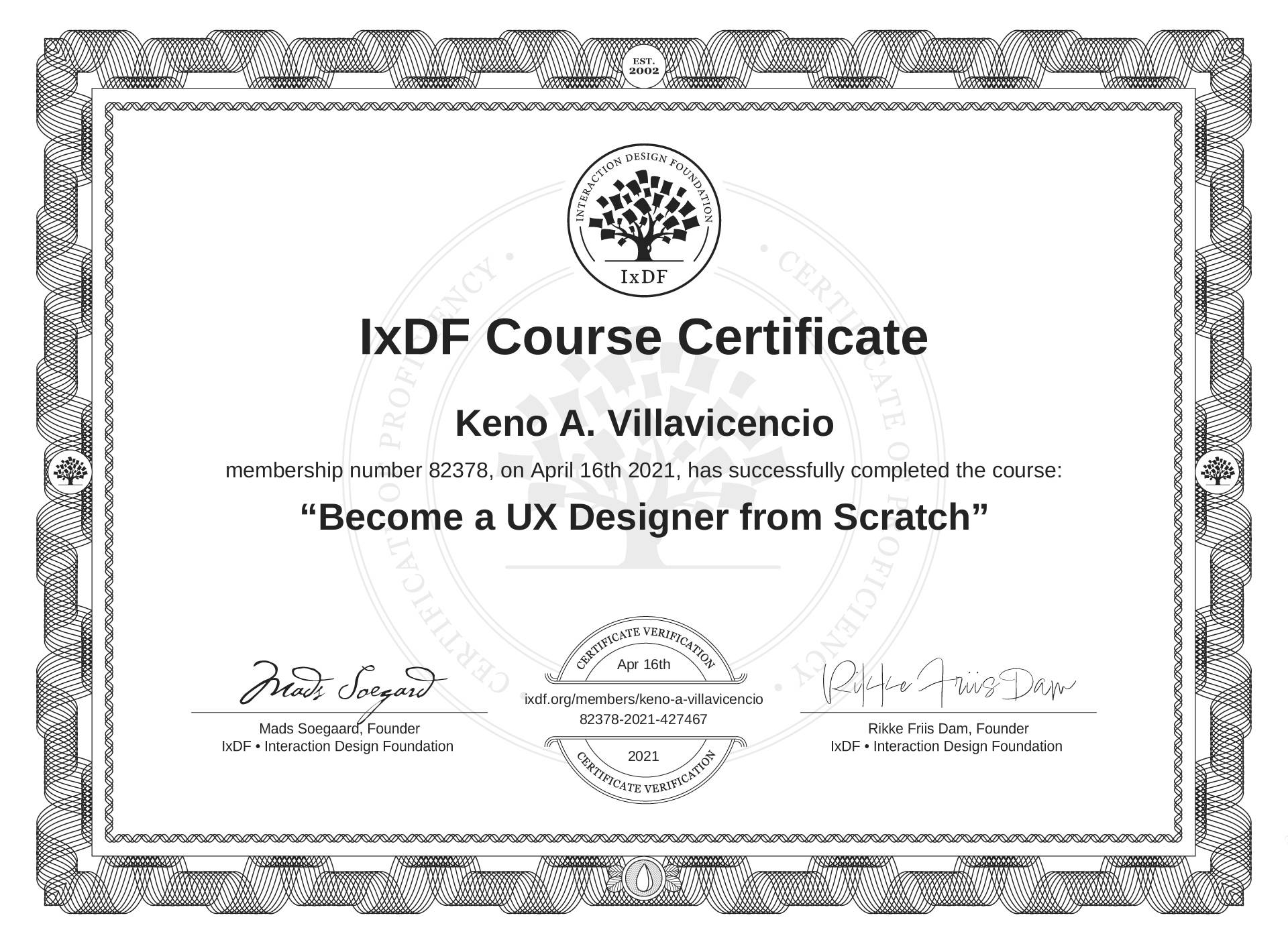 Keno A. Villavicencio's IxDF Course Certificate: Become a UX Designer from Scratch