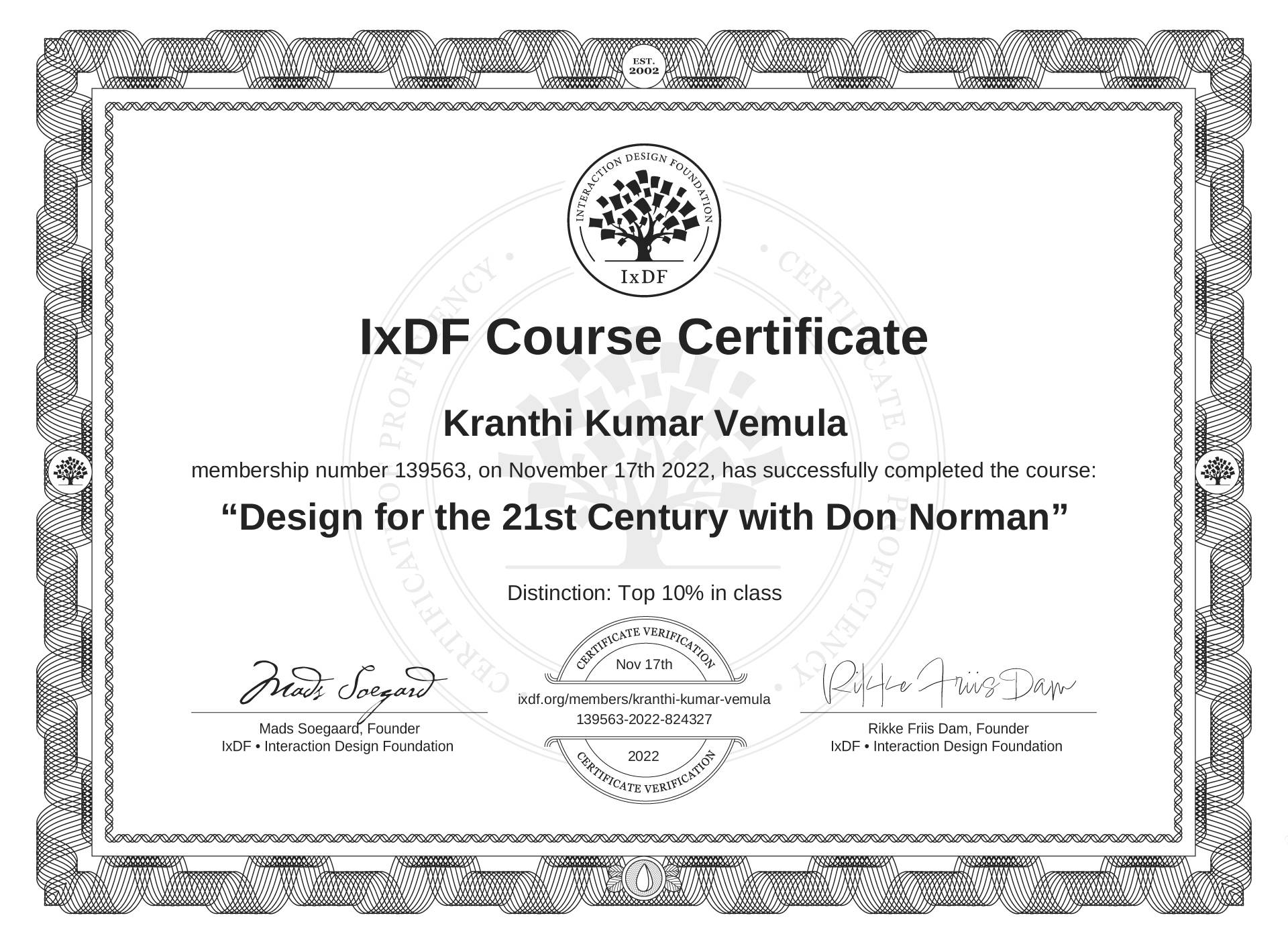 Kranthi Kumar Vemula's IxDF Course Certificate: Design for the 21st Century with Don Norman