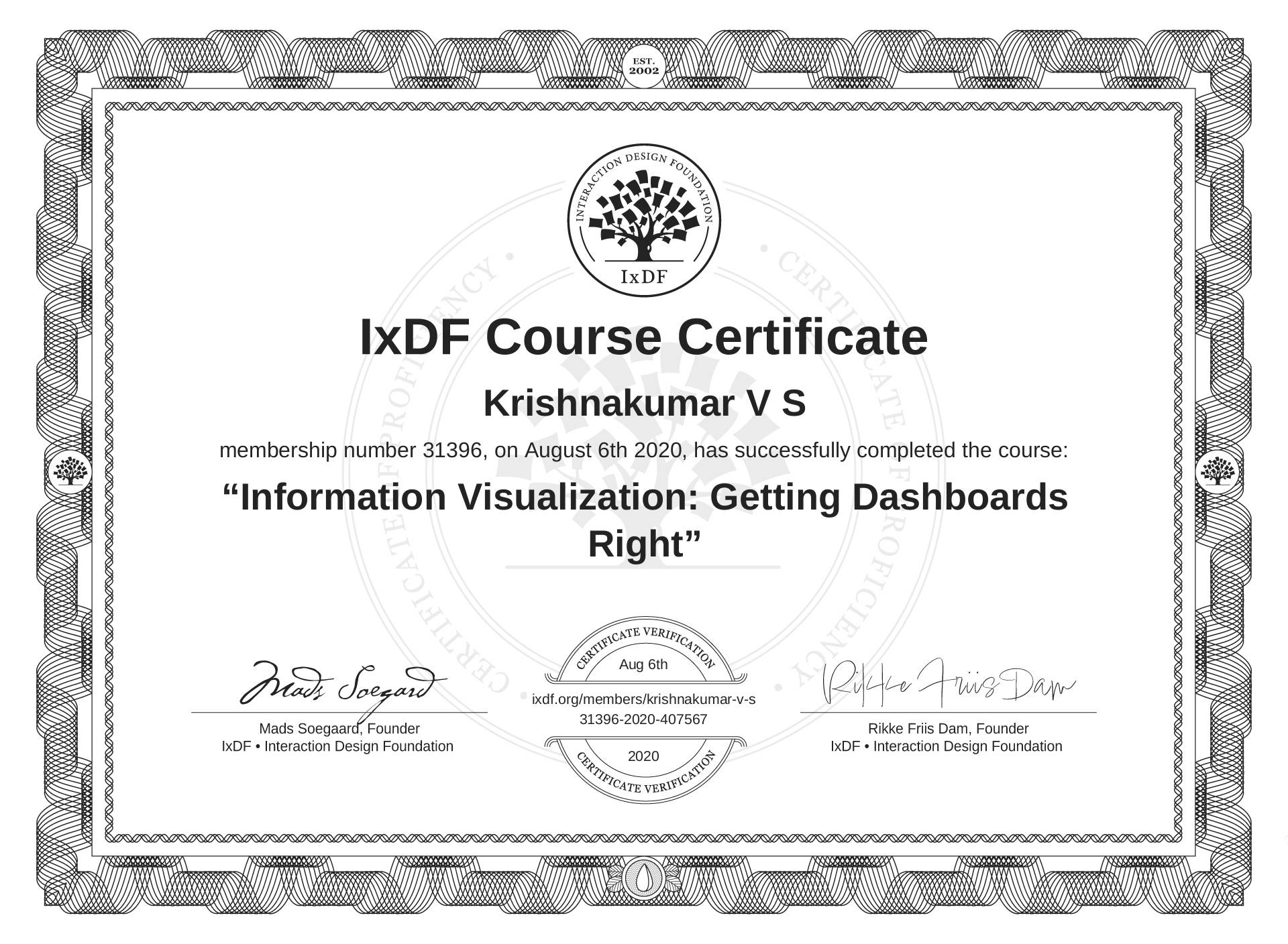 Krishnakumar V S's IxDF Course Certificate: Information Visualization: Getting Dashboards Right