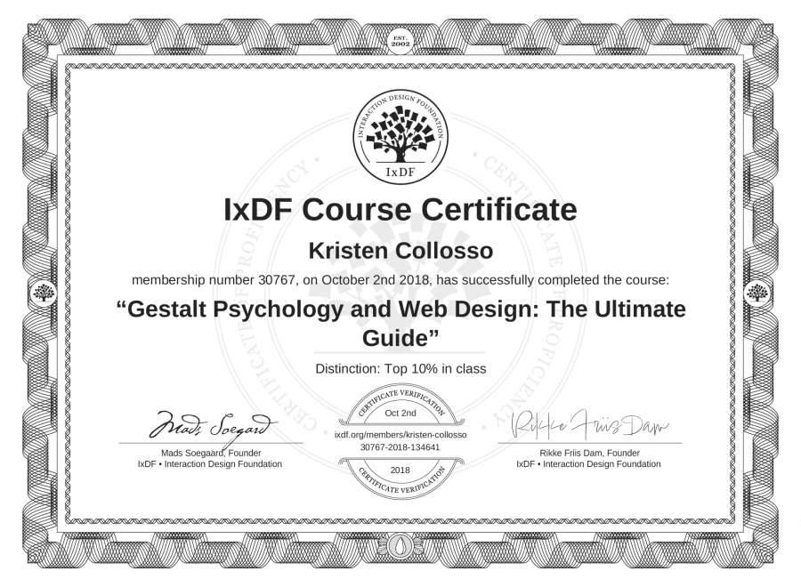 Kristen Collosso's IxDF Course Certificate: Gestalt Psychology and Web Design: The Ultimate Guide