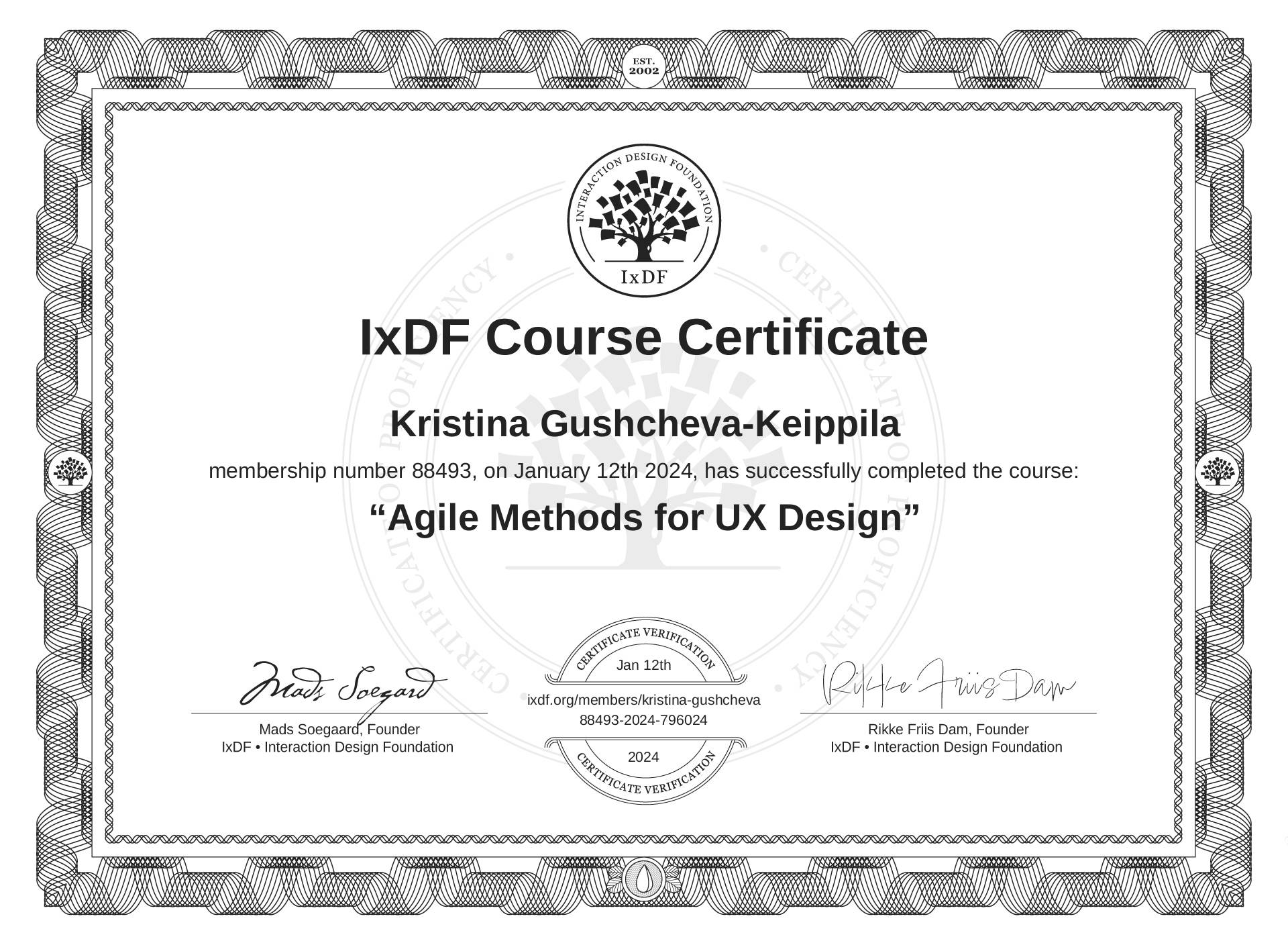Kristina Gushcheva-Keippilä's IxDF Course Certificate: Agile Methods for UX Design