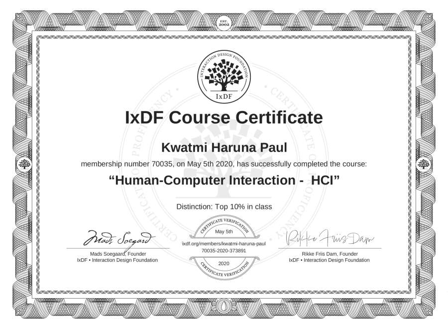 Kwatmi Haruna Paul's IxDF Course Certificate: Human-Computer Interaction - HCI