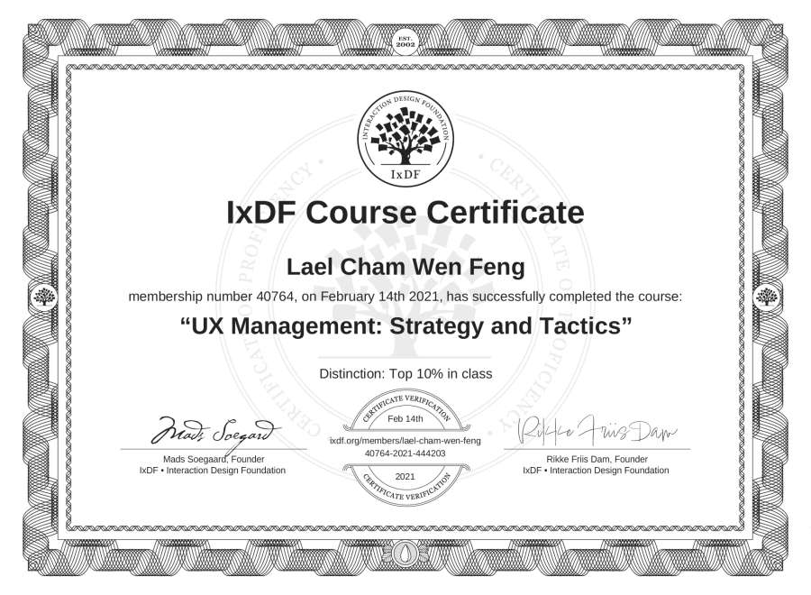 Lael Cham Wen Feng's IxDF Course Certificate: UX Management: Strategy and Tactics