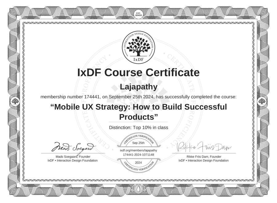 Lajapathy's IxDF Course Certificate: Mobile UX Strategy: How to Build Successful Products